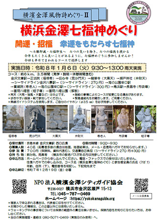 | ◆横濱金澤風物詩めぐり-Ⅱ 横浜金澤七福神 開運・招福幸運をもたらす七福神 ~七難即滅・七福即生~ 七つの災いを除き、七つの福徳を授かる。今年もたくさん良いことがあるように、七福神めぐりに参加しませんか! 今回も半日でまわれるコースで巡拝します