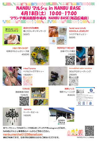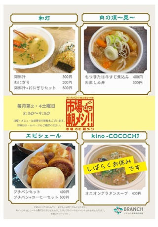 | BRANCH(ブランチ)横浜南部市場は、市場の特性をいかした「食のライブマーケット~地域と人が食でつながる交流拠点~」をコンセプトに2019年9月にオープンしました。 その地域、その季節ならではの食の魅力の発見・体験が出来る食のライブマーケットを目指した商業施設です。施設内には、芝生敷きの海辺広場などの緑豊かな空間や、調理設備を整えた交流スペース(NANBU BASE)もあり、市場の食材を積極的に取り入れたイベントも開催しています。 ◆4月分イベントカレンダー ![]() ※上記をクリックすると、大きな画像(PDFファイル)が開きます(1.1MB) 〈最新イベント情報〉 ◆ブランチ シニアデー